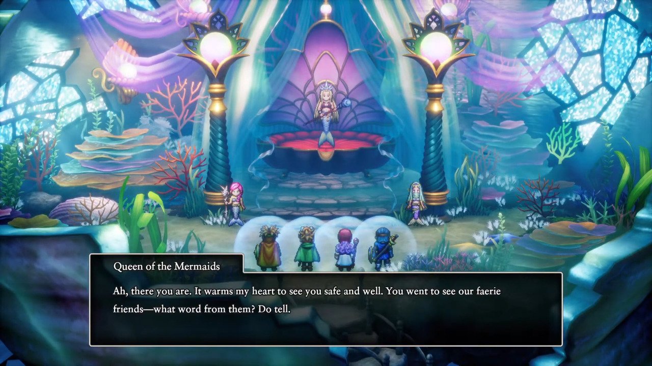Falar sobre o estilo e direção de arte aqui é chover no molhado. O estilo HD-2D é uma das maiores virtudes da Square Enix, e Dragon Quest II exemplifica perfeitamente o equilíbrio entre nostalgia e modernidade. Os sprites bidimensionais de personagens envoltos em um mundo tridimensional detalhados, cria uma estética vibrante e encantadora. As cidades, cavernas, templos e principalmente cidades submersas ganharam ainda mais vida com cores vibrantes e efeitos que reforçam a imersão.