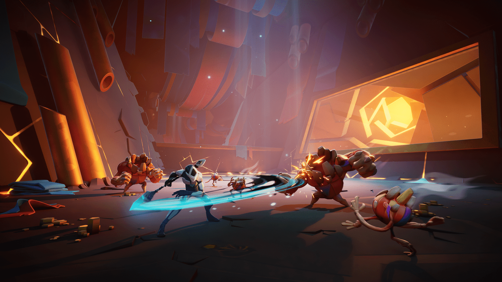 Godbreakers impressiona com sua direção de arte. O estilo artístico minimalista e limpo, aliado ao uso de cores sólidas e cenários etéreos, cria um mundo que mescla fantasia e ficção científica com elegância. Os efeitos de partículas, luzes e impactos são bem executados, com destaque para o design dos chefes, que esbanjam criatividade e presença.