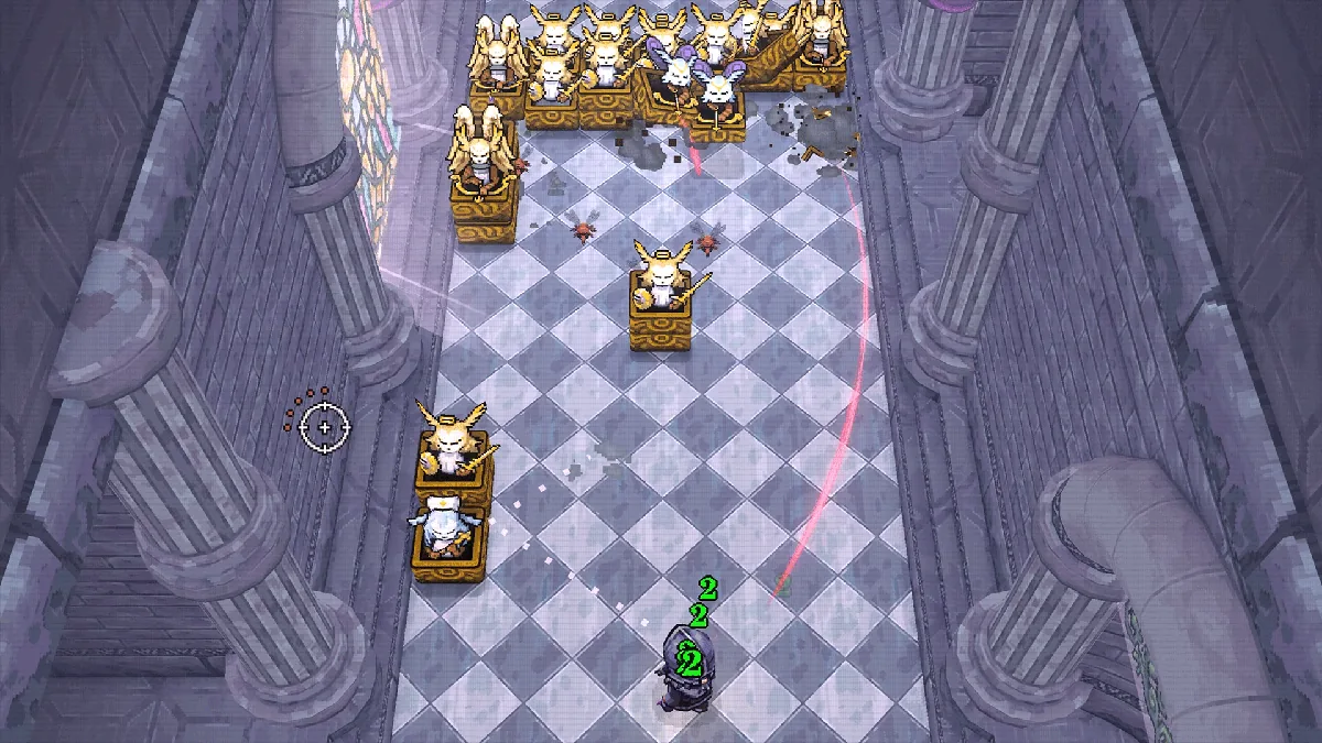 As partidas são divididas em três etapas. As duas primeiras trazem mini-chefes simples, porém letais se subestimados. A etapa final traz um boss com ponto fraco específico, exigindo estratégia, precisão e uso inteligente do ambiente — como paredes e inimigos — para rebater seus tiros e causar dano massivo.
