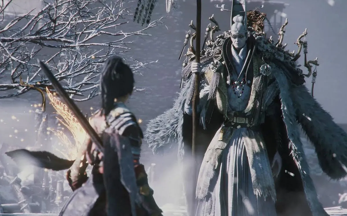 Os chefes seguem a tradição do gênero: imponentes, brutais e cheios de personalidade. Inspirados na mitologia chinesa e no tema da Feathering, muitos misturam traços humanos e animais — guerreiros demoníacos cobertos de penas, sacerdotes enlouquecidos, criaturas deformadas pela doença. Cada confronto exige domínio do Shimmer e do Skyborn Might, com lutas que frequentemente se desdobram em múltiplas fases, alternando entre ataques físicos e mágicos. Visualmente, são espetaculares: detalhes em tecidos rasgados, armaduras ornamentadas e expressões que transitam entre a dor e a fúria.